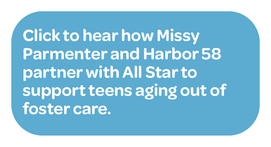 Missy Parmenter https://allstarchildren.org/missy-parmenter/ Sat, 05 Jul 2025 23:51:58 +0000 https://allstarchildren.org/?p=49015 We’re thrilled to share Missy Parmenter’s inspiring story of collaboration in our summer 2025 fundraising campaign video! As a volunteer with All Star since 2020, Missy has been a vital member of the All Star community, bringing compassion and dedication to children in foster care.   She is the Executive Director of Harbor 58 https://www.harbor58.org/, ... Read more